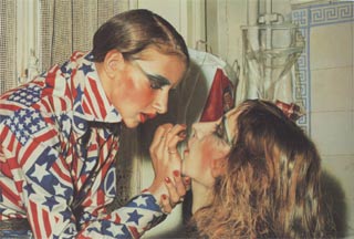 Abbildung: Franz Gertsch: Marina schminkt LucianoFranz Gertsch: Marina schminkt Luciano, 1975, 234 x 346 cm, Museum Ludwig, Köln