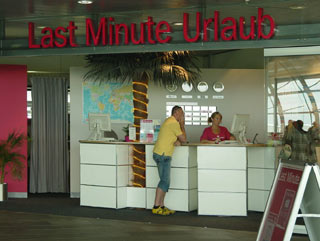 Wenn im deutschsprachigen Raum von Last Minute die Rede ist, dann meist im Zusammenhang mit einem Reiseverhalten, dem die Destination weniger wichtig geworden ist als die Hoffnung, möglichst schnell irgendwo und vor allem irgendwo anders sein zu können. Für eine Last-Minute-Perspektive ist die Destination unbestimmt. Unklar bleibt das Bild der Zukunft, wohin die Reise gehen soll; klar erscheint allein die Vorstellung einer Gegenwart, die darauf drängt, verlassen zu werden. Last Minute steht in diesem Sinne für eine Ökonomie der Flucht - einer Flucht vor der Flucht. Wichtig an der Last-Minute-Destination ist allein, dass sie eine Distanz markiert zum Hier und Jetzt. Wo sie liegt, ist eine Frage des Augenblicks vor dem Schalter. Der Grund für die Entscheidung, wohin die Flucht gehen könnte, ist manchmal nur ein Foto vom Strand, ein andermal der günstige Preis oder die Wetterprognose für die Destination. Im Sinne der günstigen Angebote könnte man auch von einer Ökonomie der Abwesenheit reden. Diese Ökonomie der Abwesenheit basiert auf einer Vorstellung von Anwesenheit, die tendenziell für unerträglich empfunden wird.