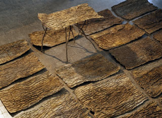 Abbildung: Giuseppe Penone, Der Raum der Skulptur (Haut der Zeder) / Lo Spazio della Scultura (Pelle di cedro), 2001, 24-teilig: 23 Elemente in Bronze, je 90 x 170, 1 Element in Bronze und Leder, 130 x 90 x 170 cm, Photo: Giuseppe Penone / Dina Carrara © VG Bild-Kunst, Bonn 2006