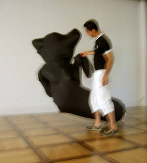 Das Publikum soll aus seiner Betrachterdistanz gelockt werden. Dabei fragt die Ausstellung "Leibesübungen" u.a. auch nach dem Gelingen und Scheitern von künstlerischen Handlungsanweisungen, wenn Künstler und Publikum miteinander kooperieren.