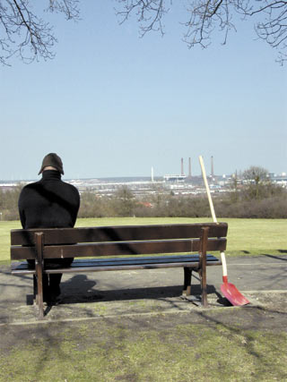Abbildung: Jörg Herold, Dokumentararchäologe im Frühling auf dem Klieversberg, Courtesy Galerie EIGEN+ART Leipzig/Berlin, ©VG Bild-Kunst, Bonn 2005